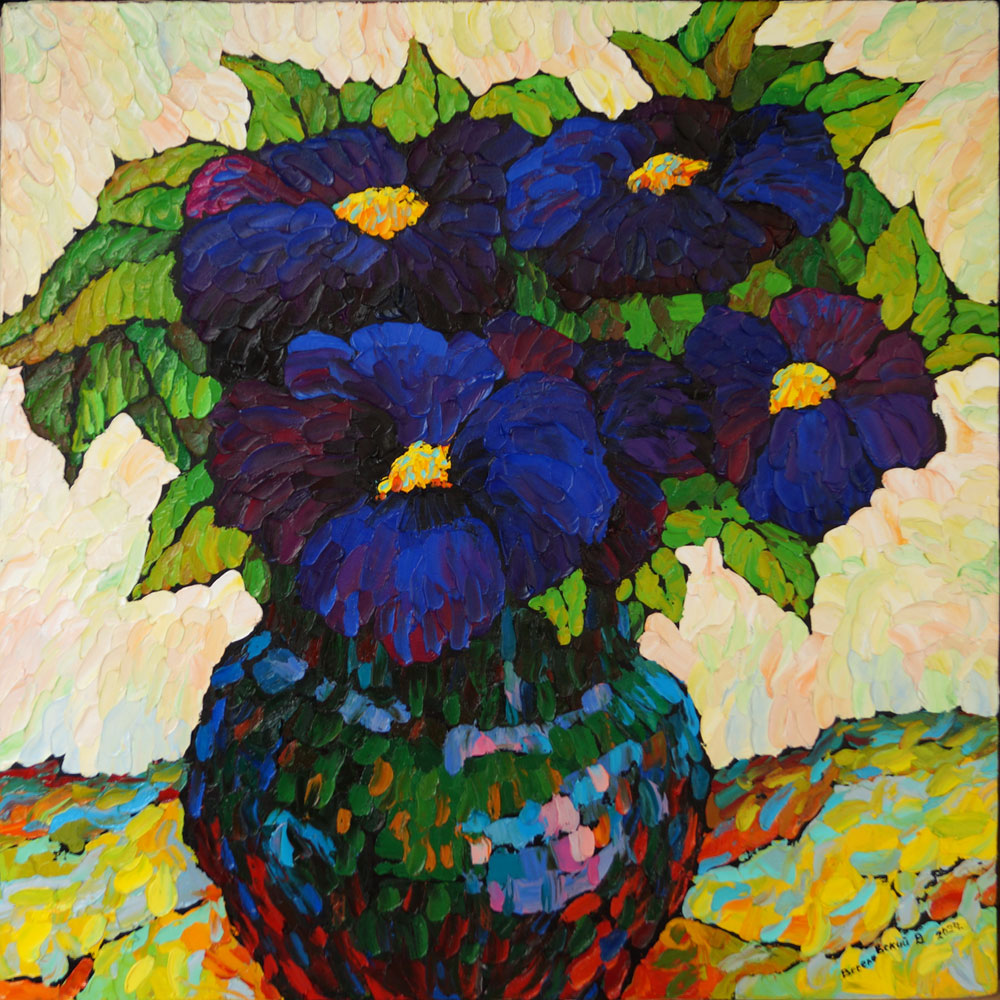 Ультрамариновые цветы. 45х45. Холст, масло. 2024.