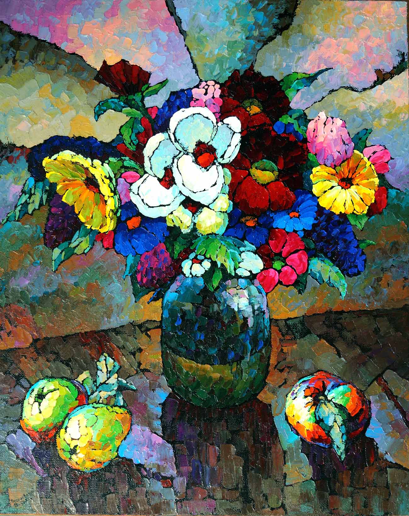 Цветы и фрукты. 101х80. Холст масло. 2022.