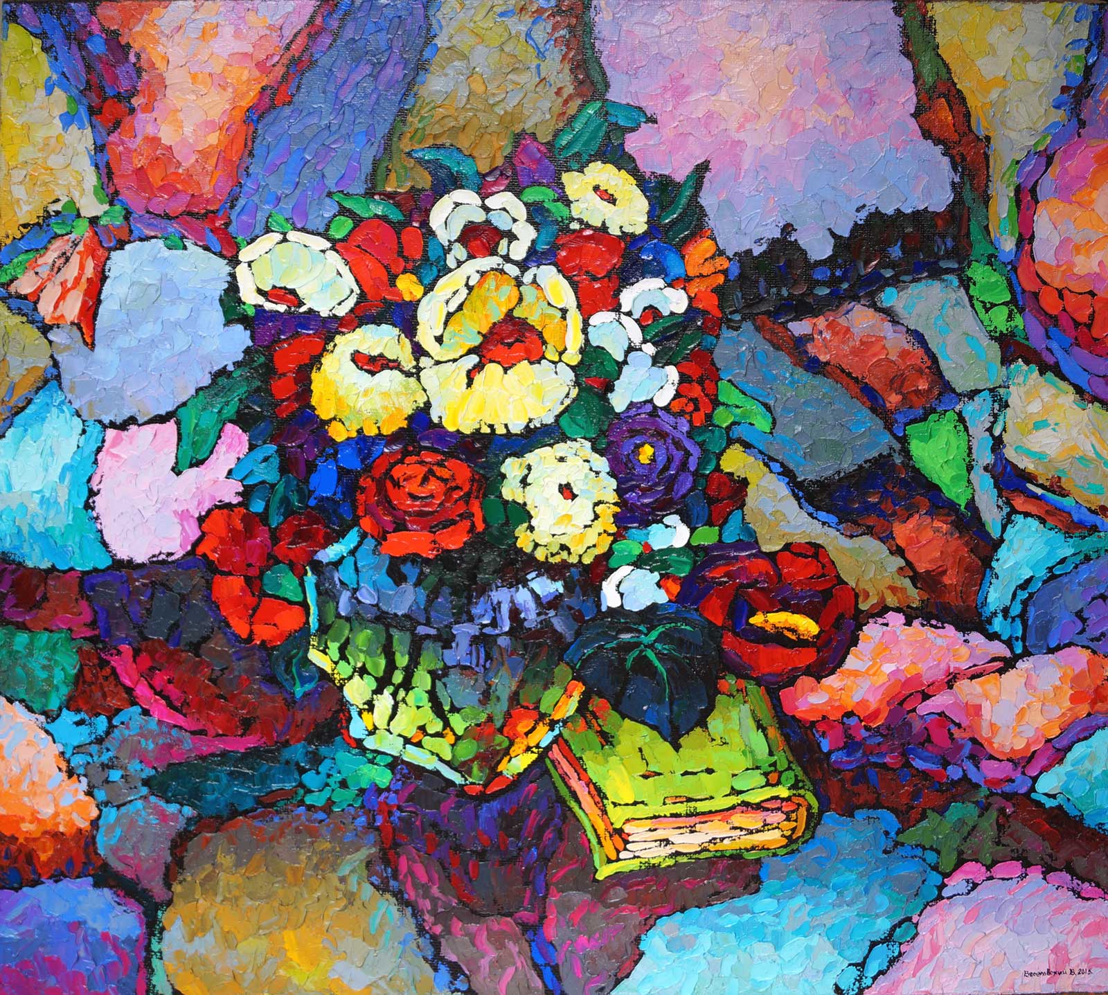 Flowers with the book. 88х98. Oil on canvas. 2015.